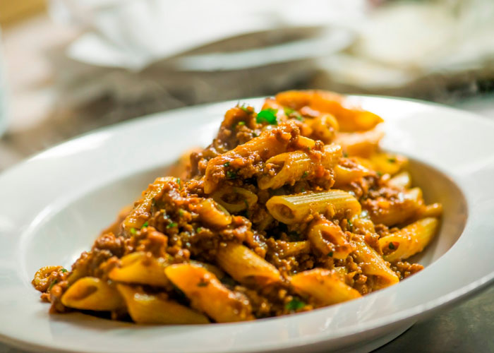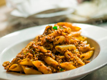 פנה / ספגטי ברוטב עגבניות, בשר טחון, בצל ופטרוזיליה