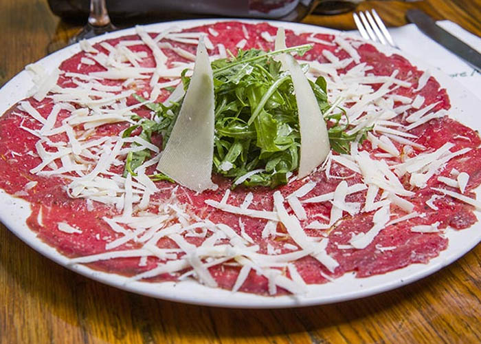 פרוסות פילה בקר, שמן זית, לימון, רוקט ופרמזן