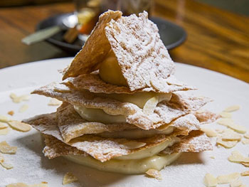 שכבות של בצק עלים עם קרם פטיסייר ושקדים