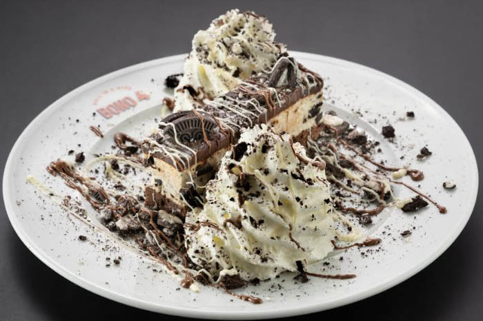 המנות מוגשות בליווי כדור גלידה וניל אמריקאית