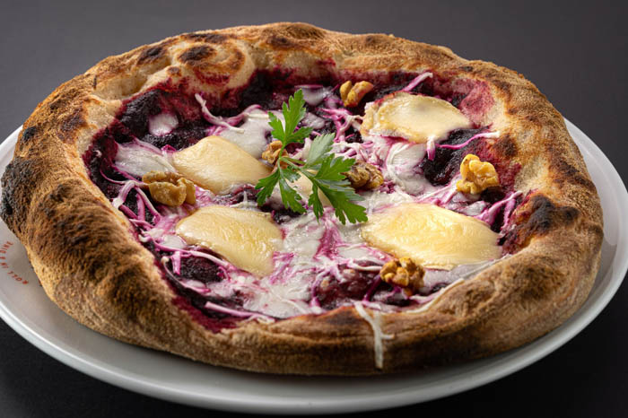 קרם סלק, גבינת מוצרלה, פטה וקממבר עם אורגנו שמן זית ואורוגולה