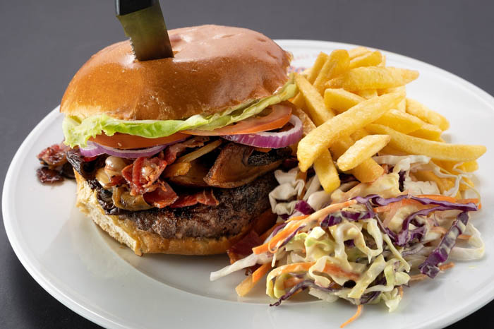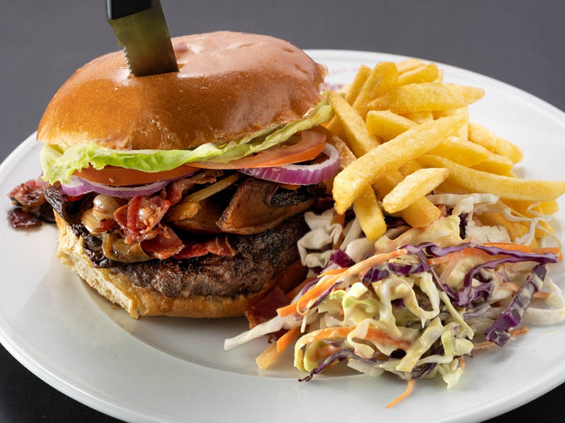 ההמבורגרים שלנו נטחנים מבשר בקר מקומי מיושן.